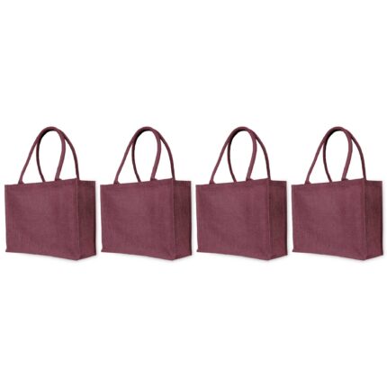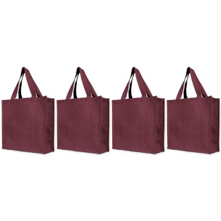 4-Pack Jute Tote Bags – Reusable 15″x12″x6″ Deep Red, Pink, Green & Orange