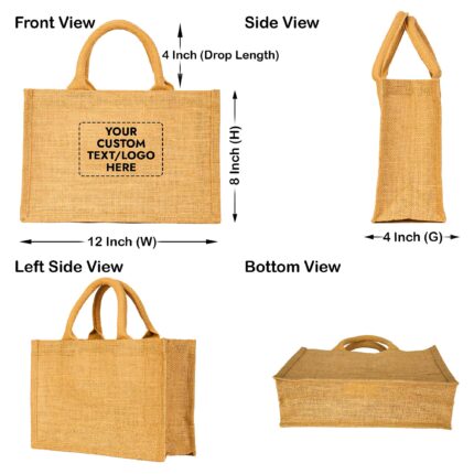 8 Jute Shopping Bags 14″x12″x7″ – Reusable DIY, Grocery, Gifting Purpose