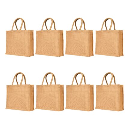 8-Pack Ecojute Jute Shopping Bags 13H x 16L x 7W – Reusable Beach & Gift Bags