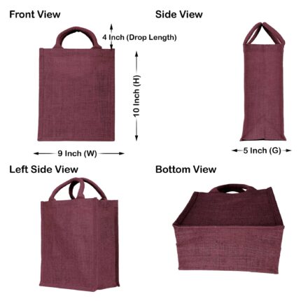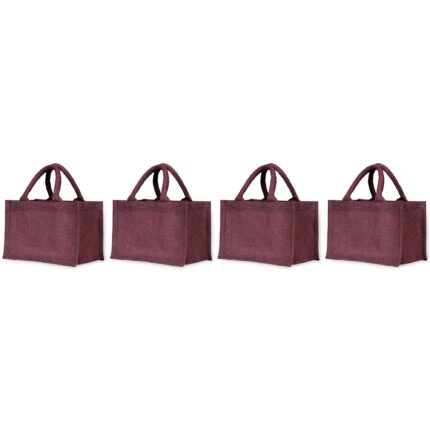 Ecojute Jute Tote Bags – Set of 4 in Deep Red, Pink, Green & Orange, 6″x9″x6″