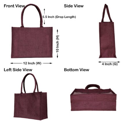 Ecojute Jute Tote Bags –Set of 4 in Deep Red, Pink, Green & Orange, 10″x12″x4″