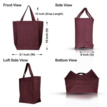 Ecojute Set of 4 Jute Tote Bags – Deep Red, Pink, Green, Orange – 18″x21″x8″