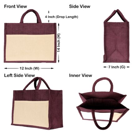 Ecojute Set of 4 Jute Tote Bags – Deep Red, Pink, Green, Orange – 12″x10″x6″