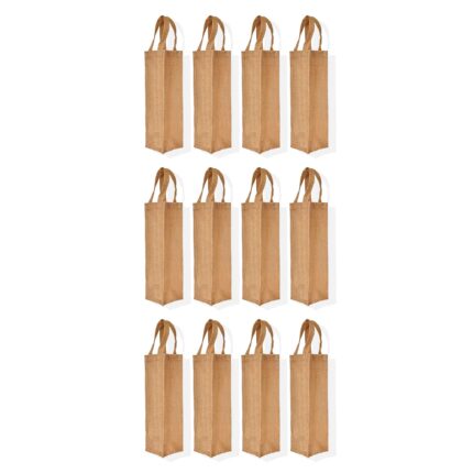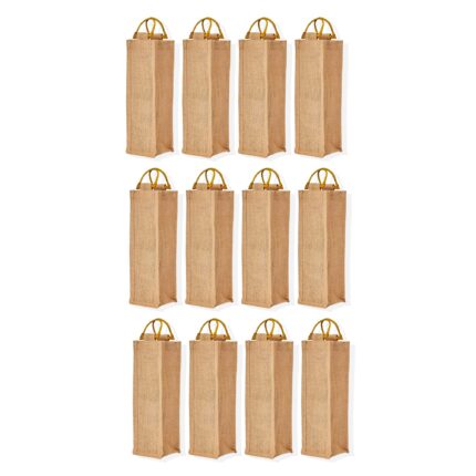 12-Pack Jute Wine Bags 3.93×13.38×3.93in – Single-Bottle Bag with Cane Handle