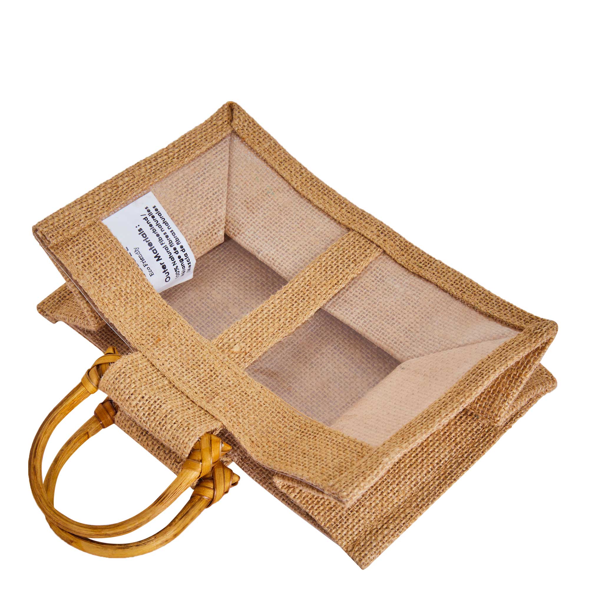 6 Jute Gift Boxes with Drawstring & PVC – 6.3″x4.33″x2.36″
