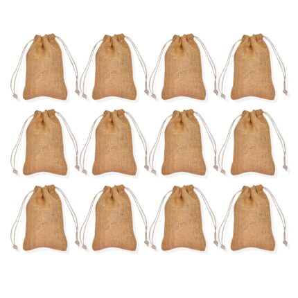 12 Burlap Gift Bags 3.93″x6.29″ – Reusable Sacks for Parties, Jewelry