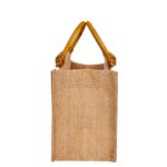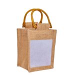6 Natural Jute Gift Bags with PVC & Cane Handle 5.91″x5.11″x3.93″