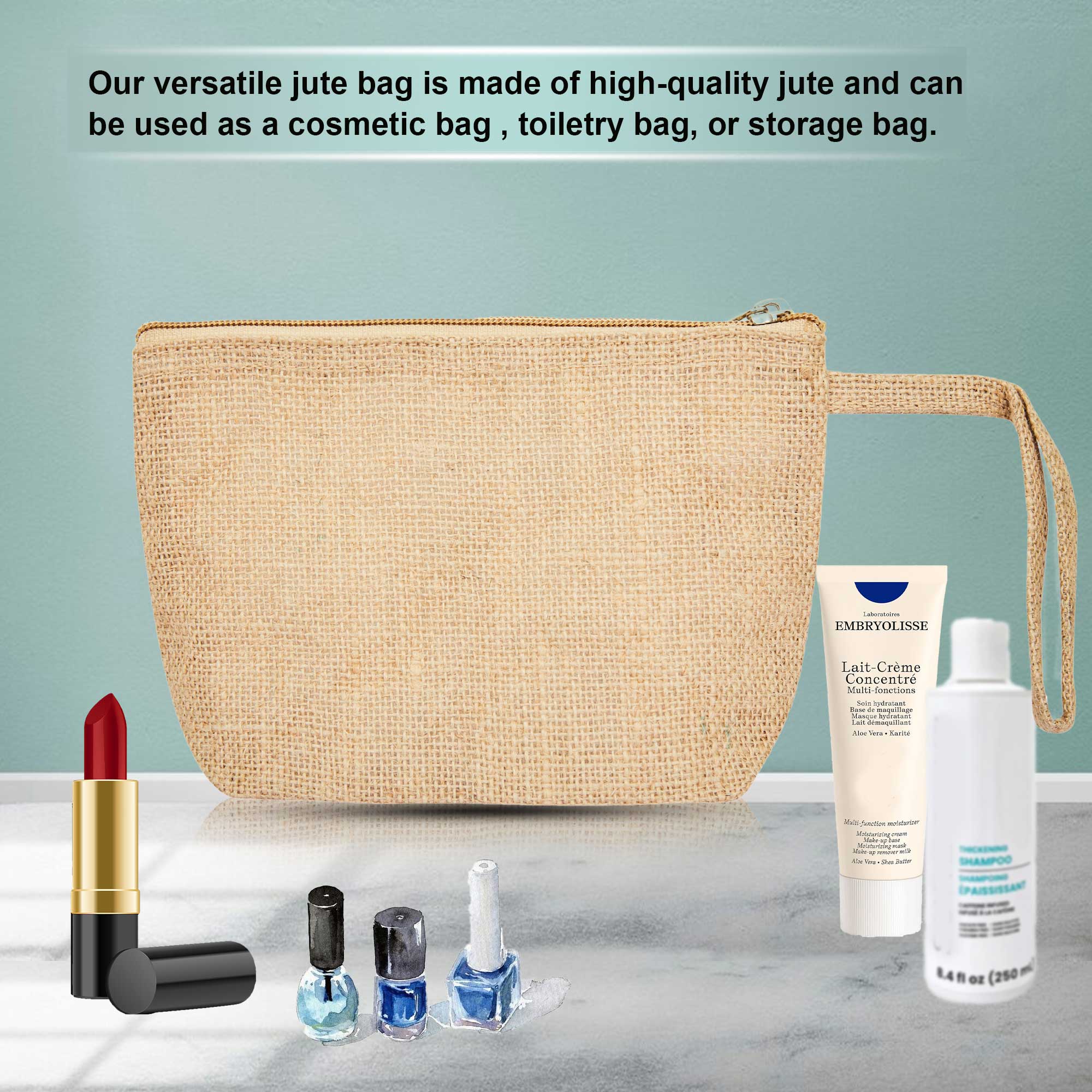 Pack of 8 Jute Cosmetic Bags – Makeup and Toiletry Pouches -5.11″ H x 7.08 “L