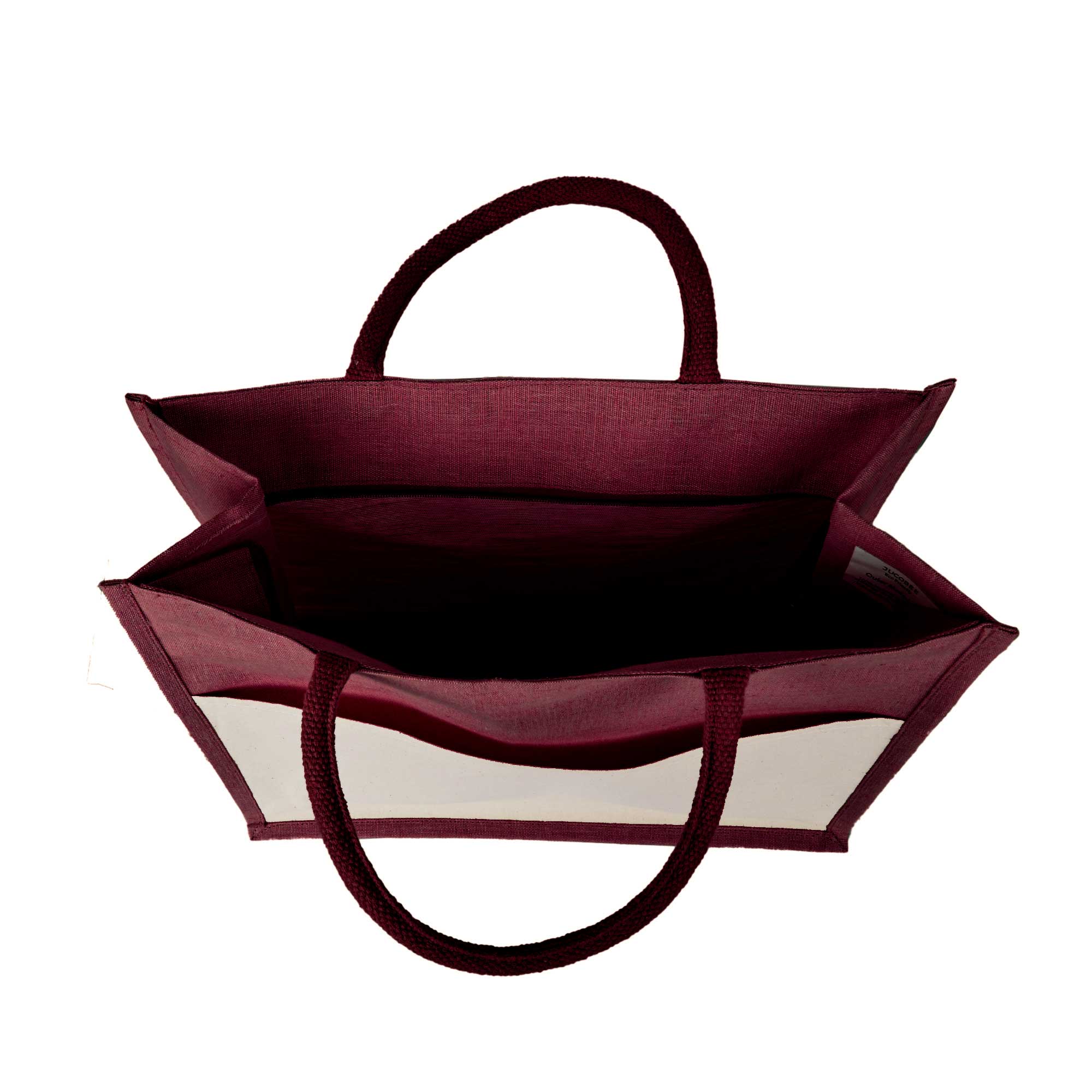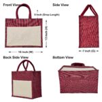 - Built with strong jute and cotton tube handles and reinforced seams, these bags offer a secure hold and can easily support heavier contents, while the inner lamination protects against light spills and dampness, making them perfect for everyday errands, beach outings, trips, office use, or DIY gift packaging, and come in a set of 4 with vibrant colors—Deep Red, Pink, Green, and Orange.