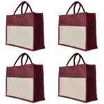 Set of 4 Juco Tote Bags– Gifting Burlap Bags with PVC Panel 10″x12″x5″