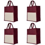 Set of 4 Juco Tote Bags – 12″x12″x8″ Reusable Burlap Totes with Handle