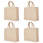 Set of 4 Juco Shopping Tote Bags – Burlap Bags 12″x16″x6″ for Travel