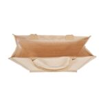 - Crafted from a high-quality and eco-friendly Juco blend, the bag is designed for long-term use, with inner lamination that enhances its strength and durability. Featuring a water-resistant laminated interior for spill protection and easy maintenance, this reusable tote blends sustainability with a timeless natural design, offering a stylish and practical choice for eco-conscious shoppers.