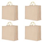 4-Pack Juco Shopping Tote Bags – Burlap Canvas Bags with Handles, 14″x16″x6″