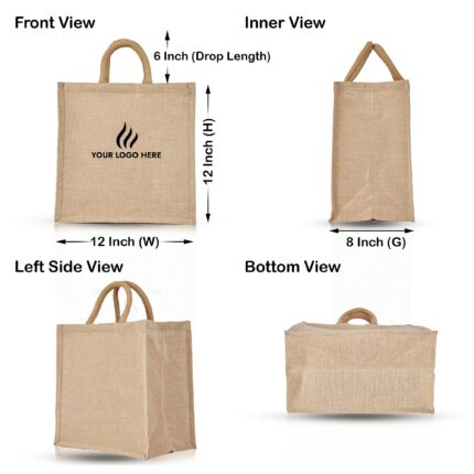 4-Pack Juco Totes – Durable Jute-Cotton Blend, Laminated, 16″x16″x6″