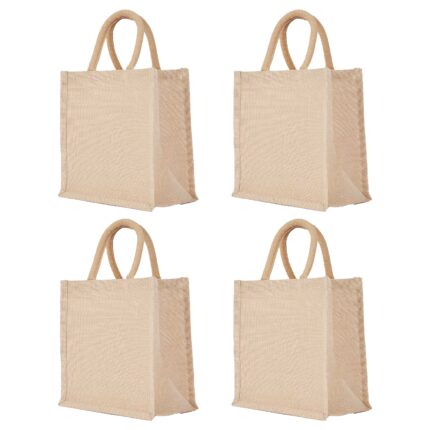 Set of 4 Eco-Friendly Juco Tote Bags – Durable Burlap Totes, 8″x12″x4″