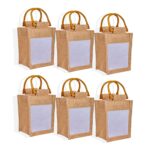 6 Jute Gift Bags – Cane Handles & Organza –8.27″x5.11″x3.39″