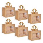 6 Jute Gift Bags with Handles & Dual PVC– 7.88″x4.92″x4.33″