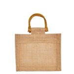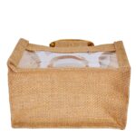 6 Natural Jute Gift Bags with PVC & Cane Handle 5.91″x5.11″x3.93″