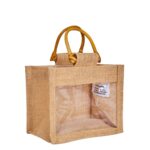 6 Natural Jute Gift Bags 4.34×5.11×3.93 – PVC & Cane Handle