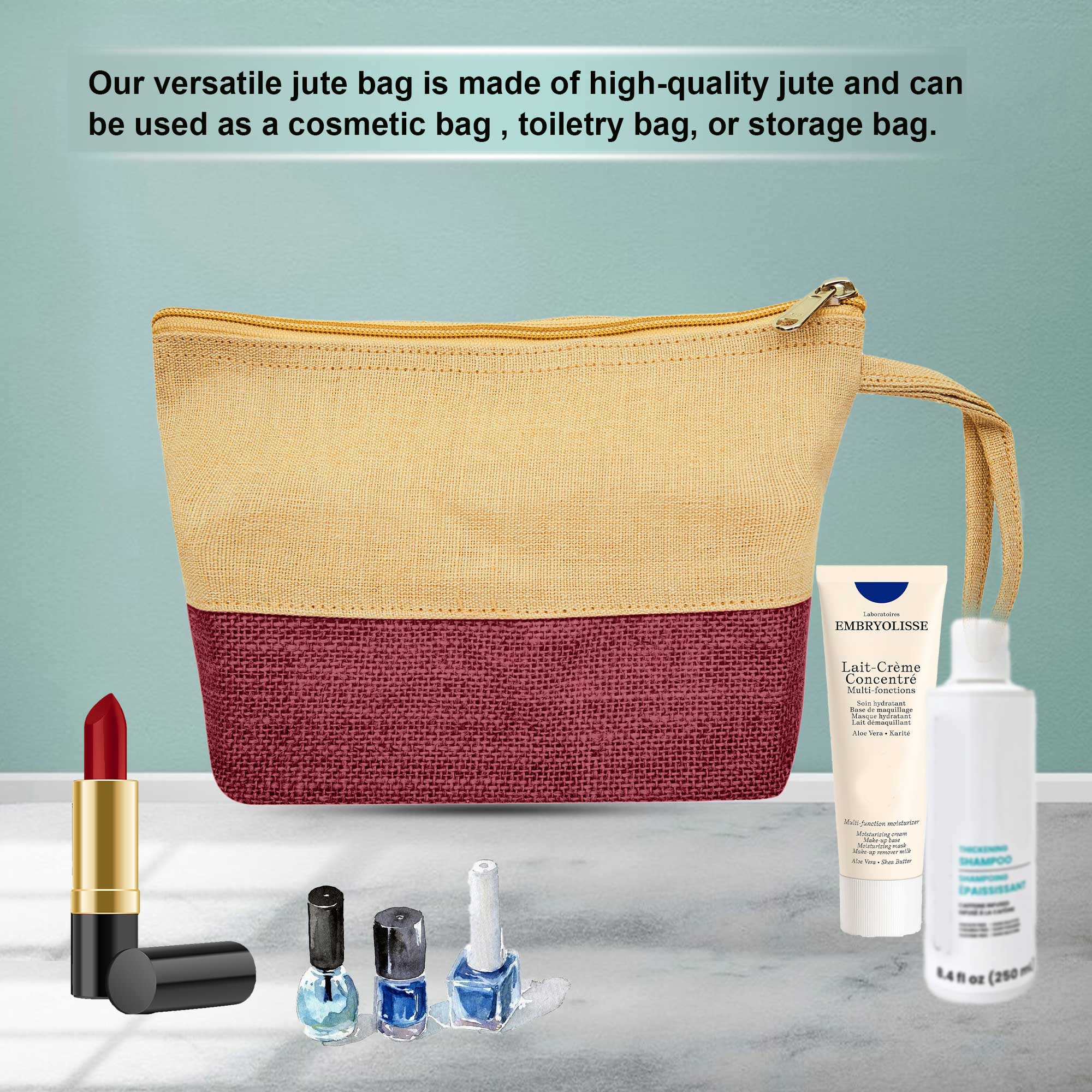 - Sustainable & Eco-Friendly – Made from high-quality jute and juco, this pouch helps reduce plastic waste, offering a durable and environmentally conscious storage option.
