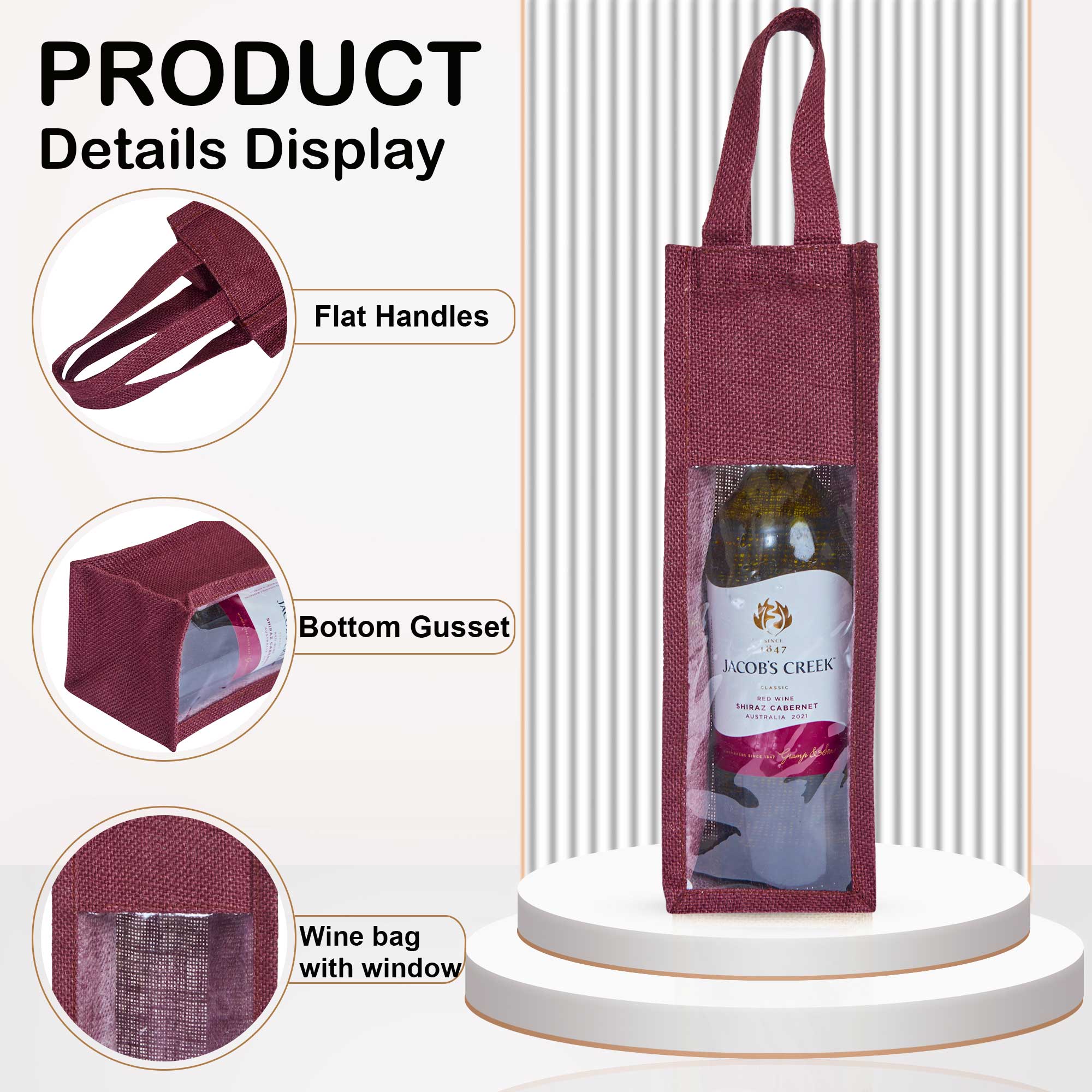 - Chic & Functional Wine Gift Bags – These laminated jute bags blend eco-conscious style with everyday function, ideal for gifting or transporting wine bottles with flair.