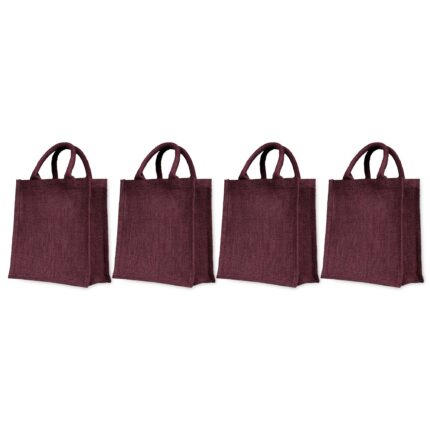 Ecojute 4-Pack Jute Tote Bags – Deep Red, Pink, Green, Orange- 10″x10″x4″