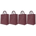 Ecojute 4-Pack Reusable Jute Bags – Deep Red, Pink, Green & Orange -14″x12″x6″
