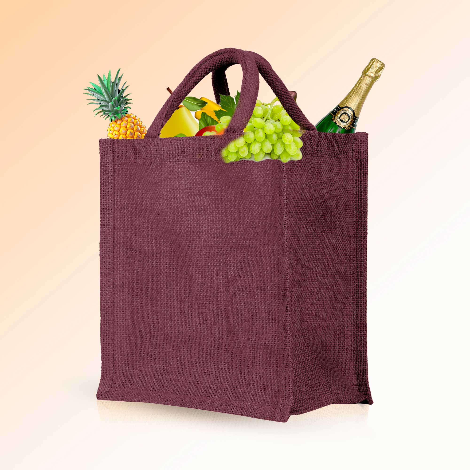 Ecojute Set of 4 Jute Bags – 12″x10″x4″ in Deep Red, Pink, Green & Orange