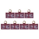 Ecojute Set of 7 Jute Gift Bags with Cane Handles & PVC Windows – Deep Red, Pink, Green, Orange- 4.92″ x 7.88″ x 4.33″