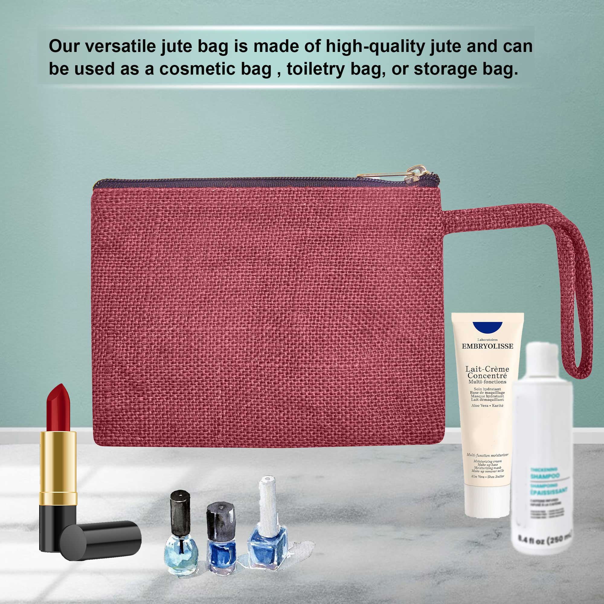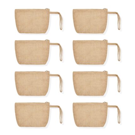 Pack of 8 Jute Cosmetic Bags – Makeup and Toiletry Pouches -5.11″ H x 7.08 “L