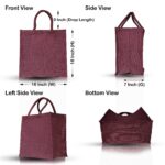 - Spacious Design for Everyday Use – Generously sized at 18""H x 16""L x 7""W, these bags are ideal for shopping, travel, event giveaways, or daily storage needs. Eco-Conscious & Durable Build – Crafted from sturdy, biodegradable jute with reinforced stitching, these reusable totes are a long-lasting and sustainable alternative to single-use plastic bags.