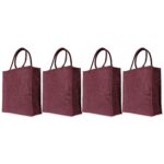 Ecojute 4-Pack Jute Tote Bags – Deep Red, Pink, Green, Orange- 10″x10″x4″
