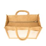 - Durable & Eco-Conscious Design – Crafted from 100% natural jute with an inner lamination for added strength and water resistance, featuring a stylish cotton front pocket, and Zipper Clouser
