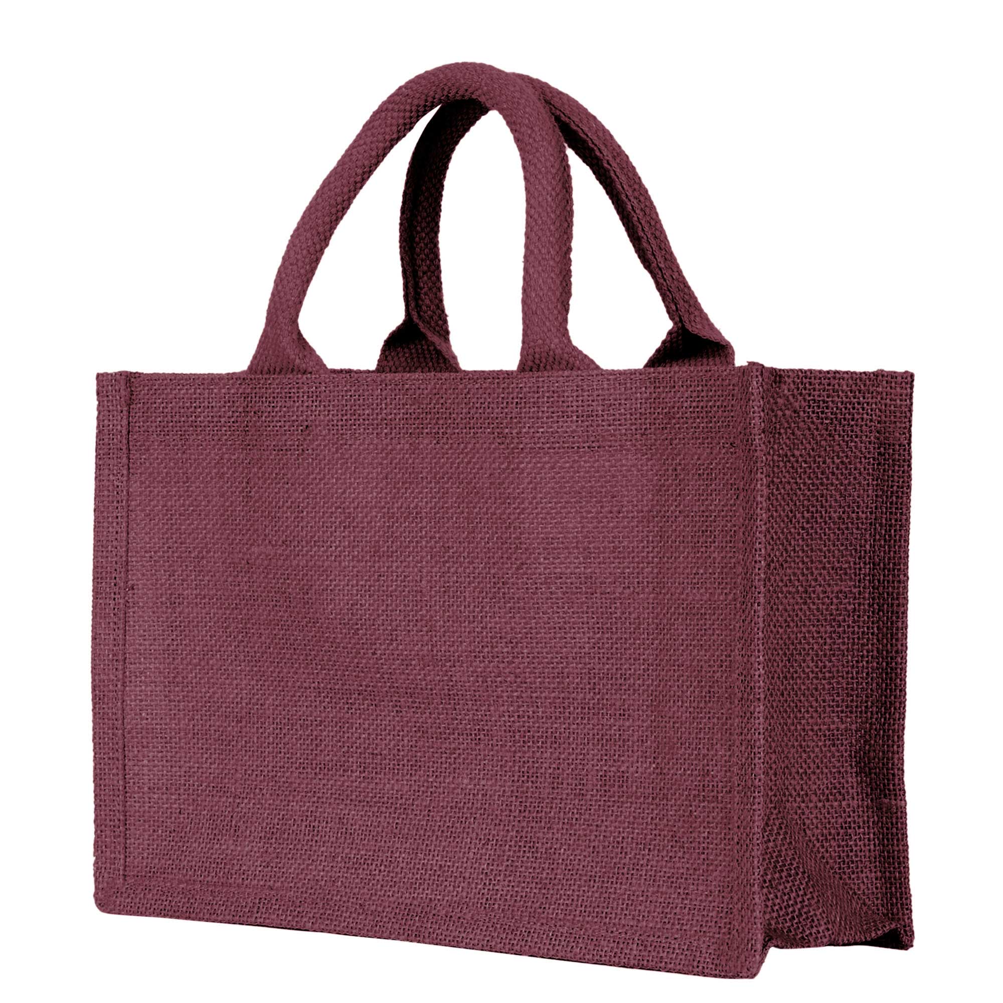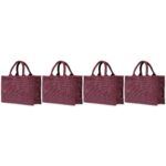 Set of 4 Ecojute Jute Bags – 8″x12″x4″ in Deep Red, Pink, Green & Orange