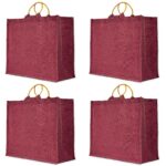 Set of 4 Juco Tote Bags – 14″x12″x6″ Reusable Grocery Bags with Lining