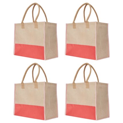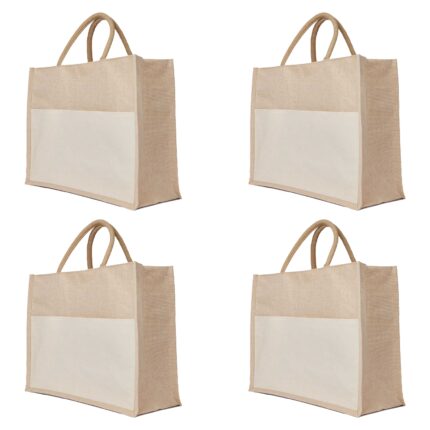 4-Pack Shopping Juco Handbags – Reusable Totes with Pocket, 12″x10″x4″