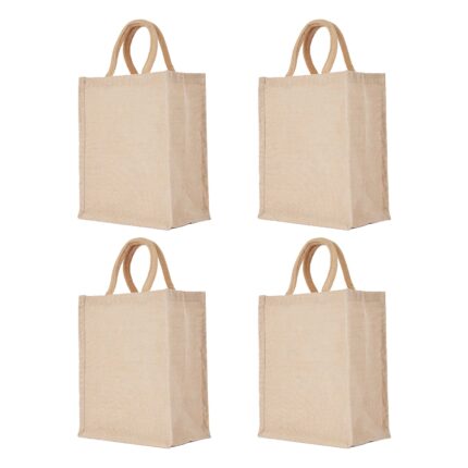 Set of 4 Eco-Friendly Juco Tote Bags – Durable Burlap Totes, 8″x12″x4″