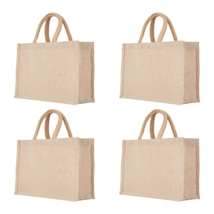 Set of 4 Juco Tote Bags – 14″x12″x6″ Reusable Grocery Bags with Lining