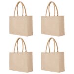 Set of 4 Juco Shopping Tote Bags – Burlap Bags 12″x16″x6″ for Travel