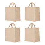 Set of 4 Juco Tote Bags – Durable Reusable Burlap with Handles, 9″x10″x5″
