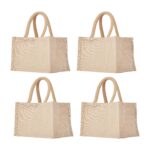 Set of 4 Juco Tote Bags – 12″x12″x8″ Reusable Burlap Totes with Handle