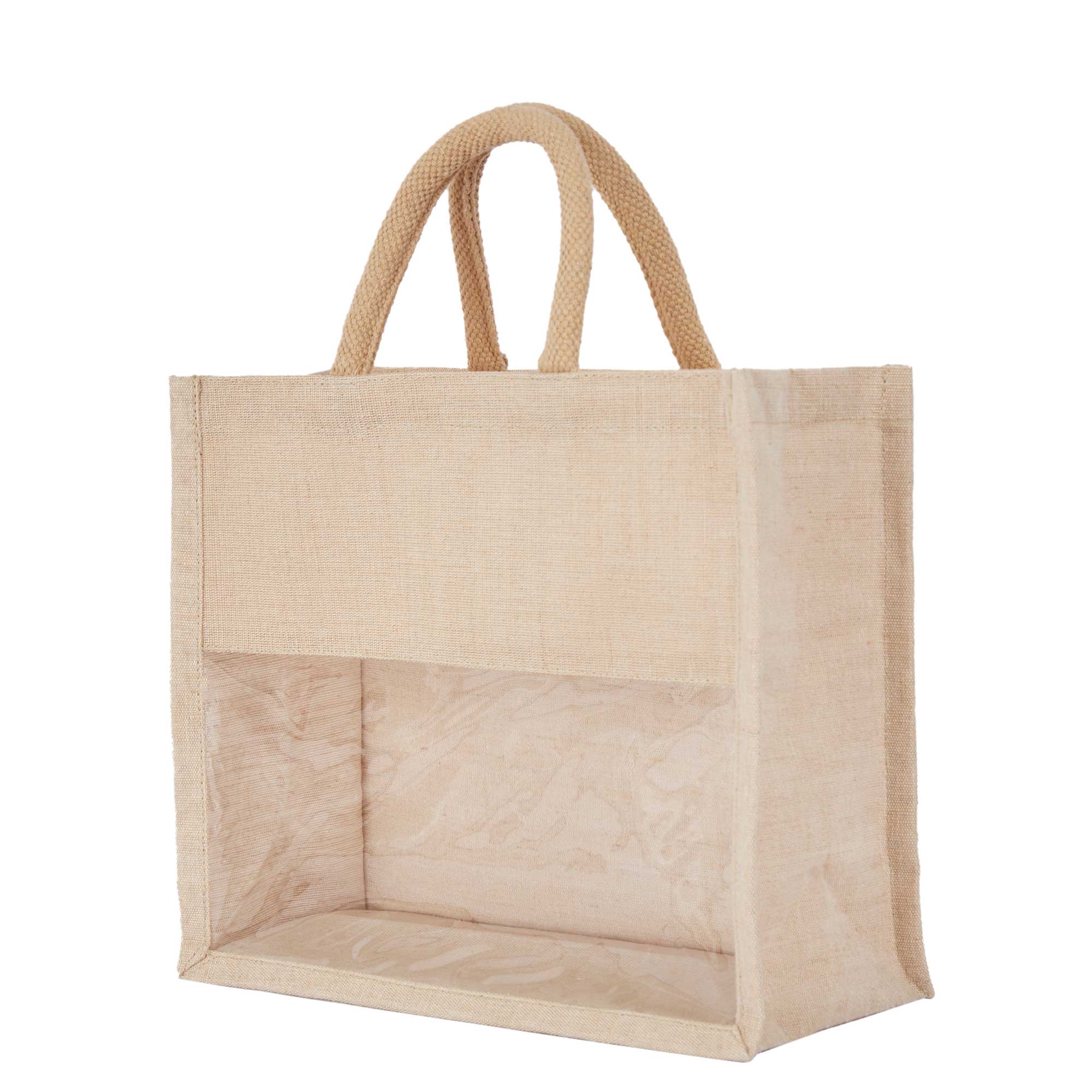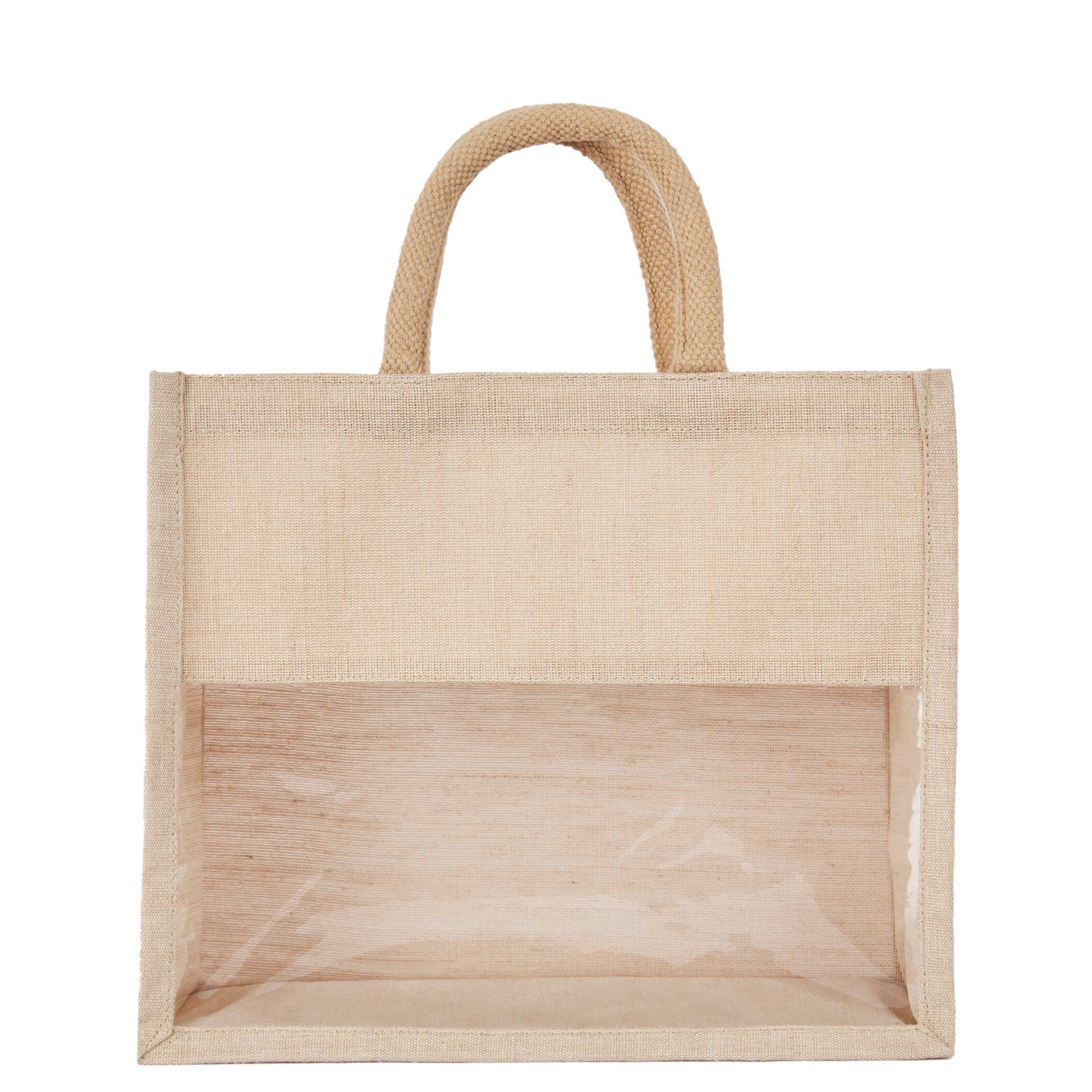 - Stylish and versatile, these totes feature a modern transparent PVC front and sturdy round tube handles, making them perfect for beach trips, bridesmaid gifts, shopping, or travel, while the durable Juco with laminated lining ensures strength and easy maintenance.