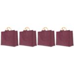 Set of 4 Jute Bags in Deep Red, Pink, Green & Orange– 15″x18″x8″ -Cane Handles
