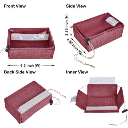 Pack of 7 Jute Gift Boxes with PVC Window and Drawstring 2.36″ x 6.3″ x 4.33″ – Deep Red, Pink, Green, Orange