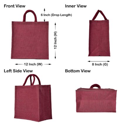 4 Juco Tote Bags – 15x12x6 Deep Red, Pink, Green, Orange
