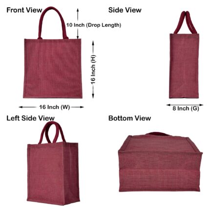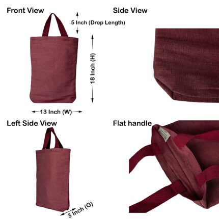 4 Juco Tote Bags – Deep Red, Pink, Green, Orange -16x16x8